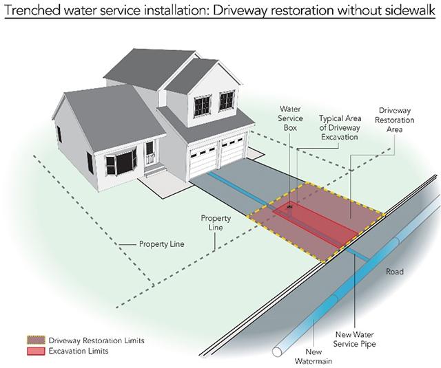 - Asphalt driveways: If we have cut your driveway, the driveway will be repaired by paving a stripe over the disturbed area, resulting in minimal seams in the final driveway. Peel Region cannot replace your entire driveway.
