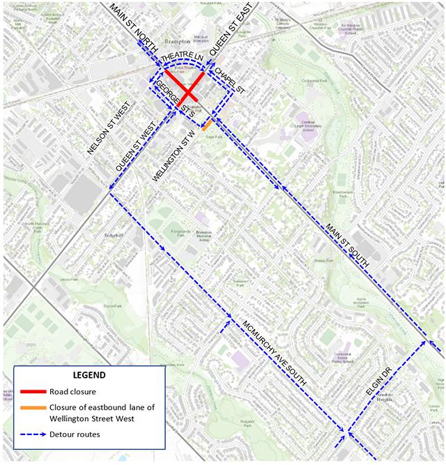 Streets affected: Main Street and Queen Street, Brampton