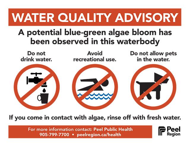 Peel Public Health monitors water quality at 4 public beaches to make sure that the water is safe for swimming. Water is tested a minimum of once a week throughout the summer. Signs are posted when the water is unsafe for swimming.